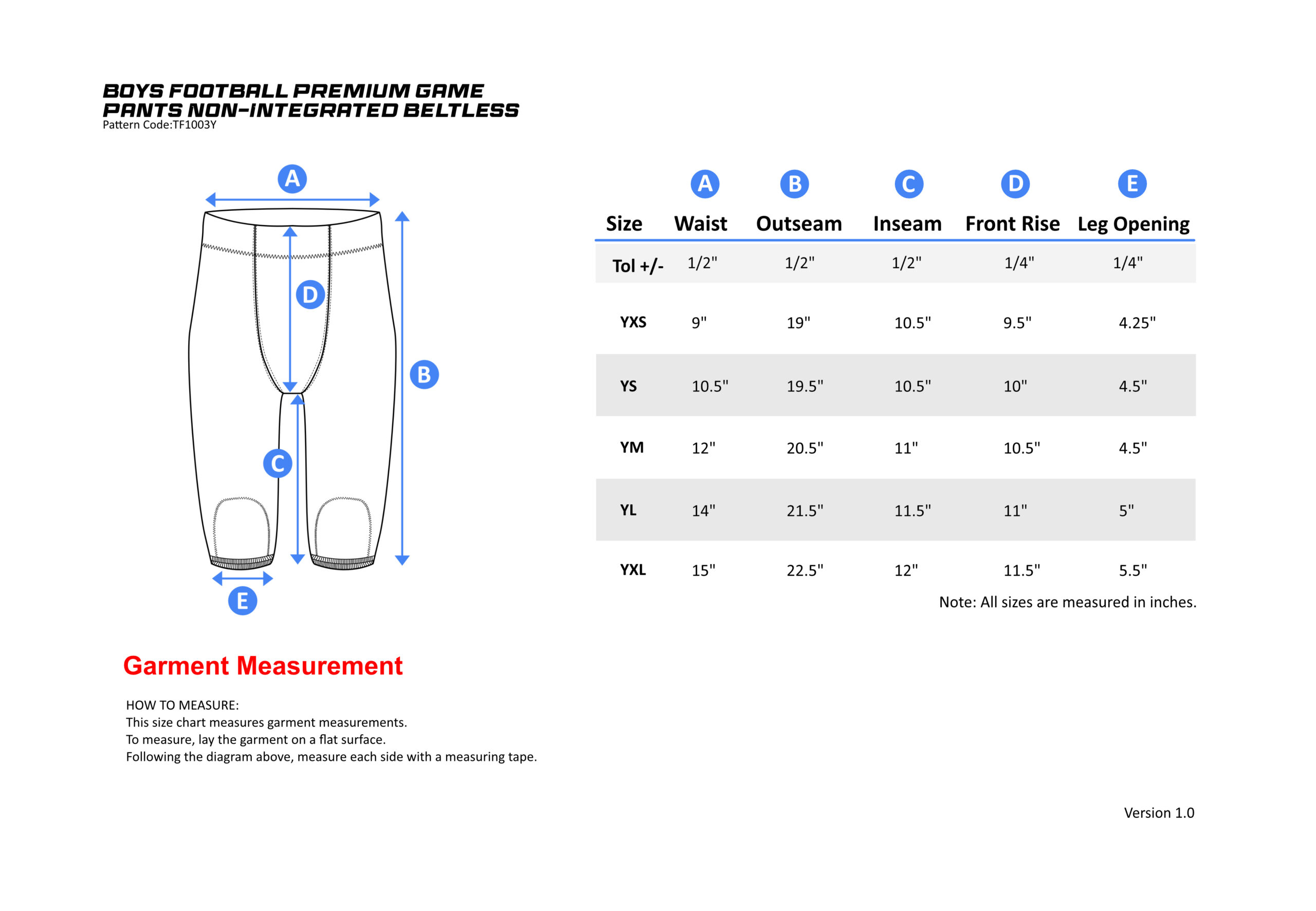 Elite YOUTH Football Pants Beltless Non Integrated